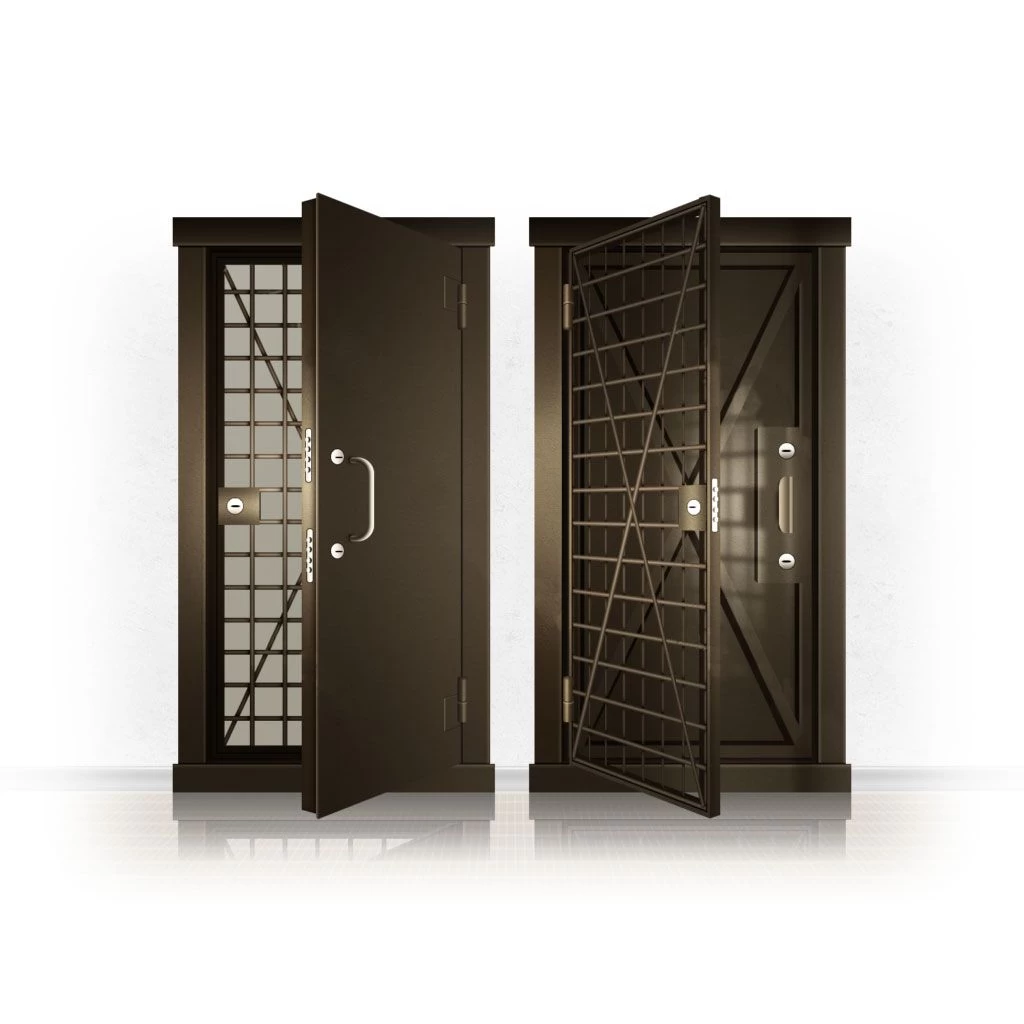 Металлические двери КХО и КХН представляют собой входные блоки, обладающие высоким уровнем взломостойкости и состоят из трех основных элементов: усиленного каркаса, сплошного металлического полотна и решетчатой двери. Дверной блок изготавливается из стального уголка 100*100 мм. Места крепления блока к стене цементируются и закрываются стальными наличниками шириной 40 мм. Крепеж заходит вглубь стены на 80 мм. В конструкции внешней створки монтируются ребра жесткости, для обшивки используется сталь толщиной не менее 3 мм. Внутренняя решетка изготавливается из прутка диаметром 16 мм. Размер ячеек решетки должен составлять не более 15 на 15 см. В точках пересечения прутья надежно приваривают друг к другу. В КХО и КХН необходимо поддерживать определенную температуру и влажность. Для этого внутреннее пространство глухой двери заполняется теплоизоляционным материалом, а по периметру двери приклеивается уплотнитель. Такие двери оборудуются замками с повышенным уровнем взломостойкости. Специализированные двери КХО и КХН в Сухиничах могут быть оснащены сигнализацией, в конструкции могут быть проушины для навесного замка и элементами для опечатывания. Если идет речь о двери в комнату хранения оружия, в створке оборудуется окно для выдачи оружия и спец. средств, которое накрывается стальной дверцей.