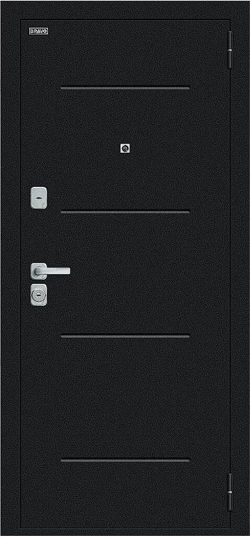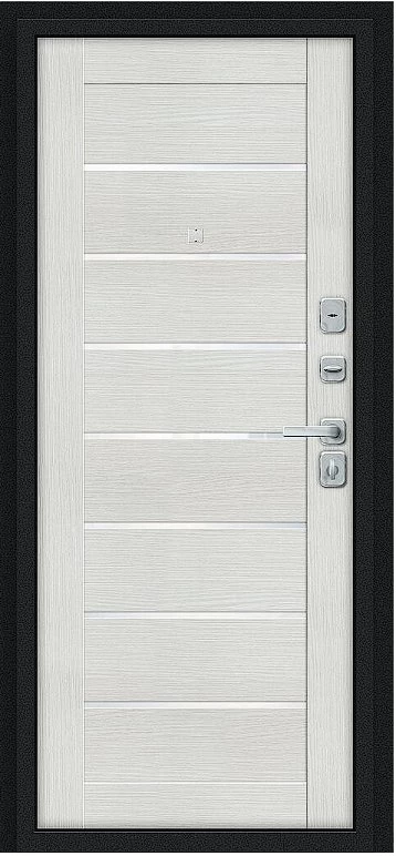 Надежная входная Дверь Браво Техно/BChrome Букле черное/Bianco Melinga премиум класса по цене 34 435 руб. Большая толщина стали защитит от проникновения в ваш дом, квартиру или коттедж. Используется очень качественная фурнитура: замки, цилиндры, ручки, защелки. Покрытие и отделка двери изготовлено под внимательным контролем производителя. Дверь имеет долгий срок службы и гарантию.